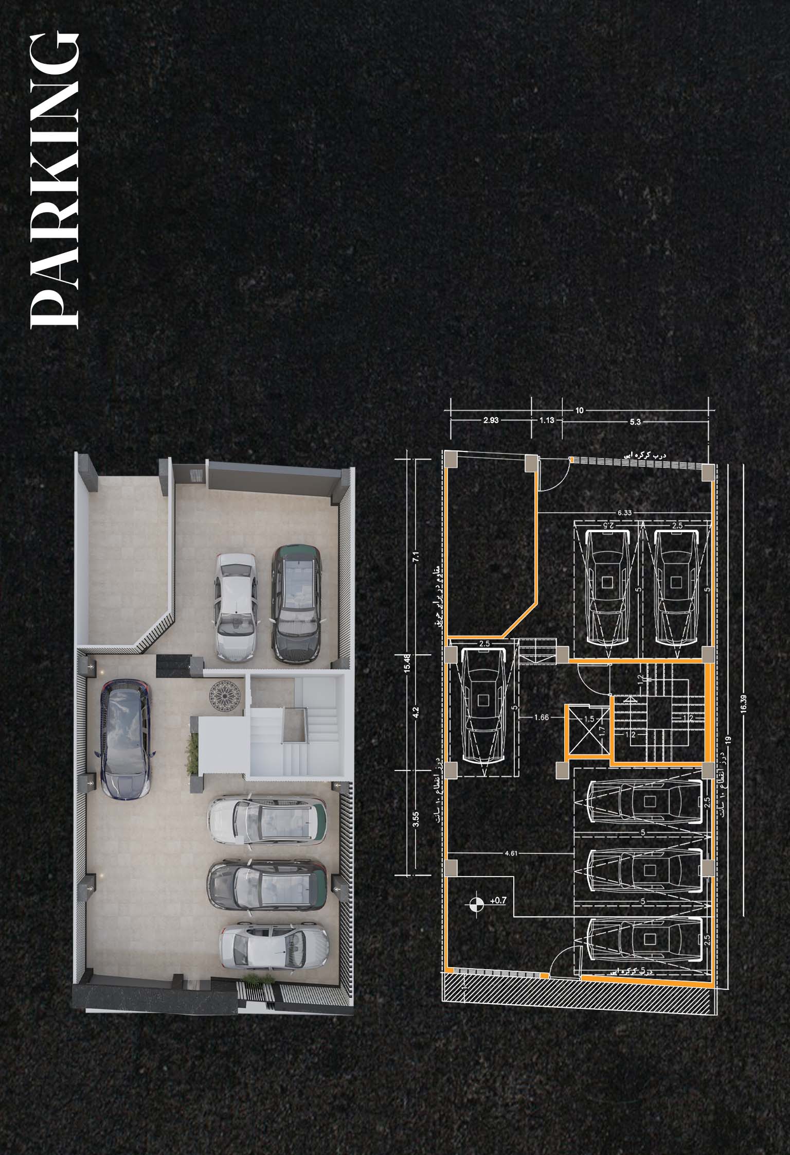 هر واحد دارای پارکینگ اختصاصی مسقف است که با طراحی مدرن و هماهنگ با نمای کلی ساختمان، فضایی کاربردی و شیک را ارائه میدهد.
