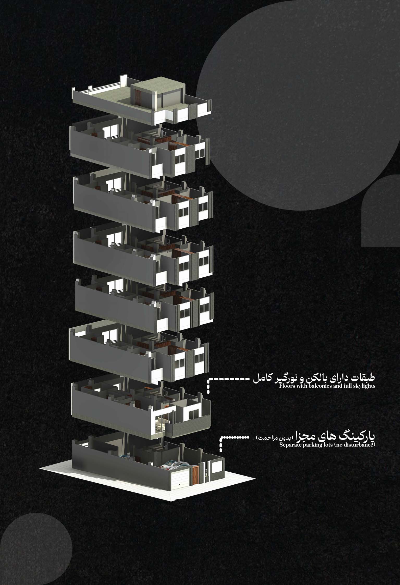 Located in the heart of Gorgan, this six-story residential project was designed to offer a calm and functional living environment with a contemporary and refined aesthetic. Each floor features a single private unit, thoughtfully crafted to meet the needs of modern urban life with a focus on natural light, comfort, and spatial efficiency.
