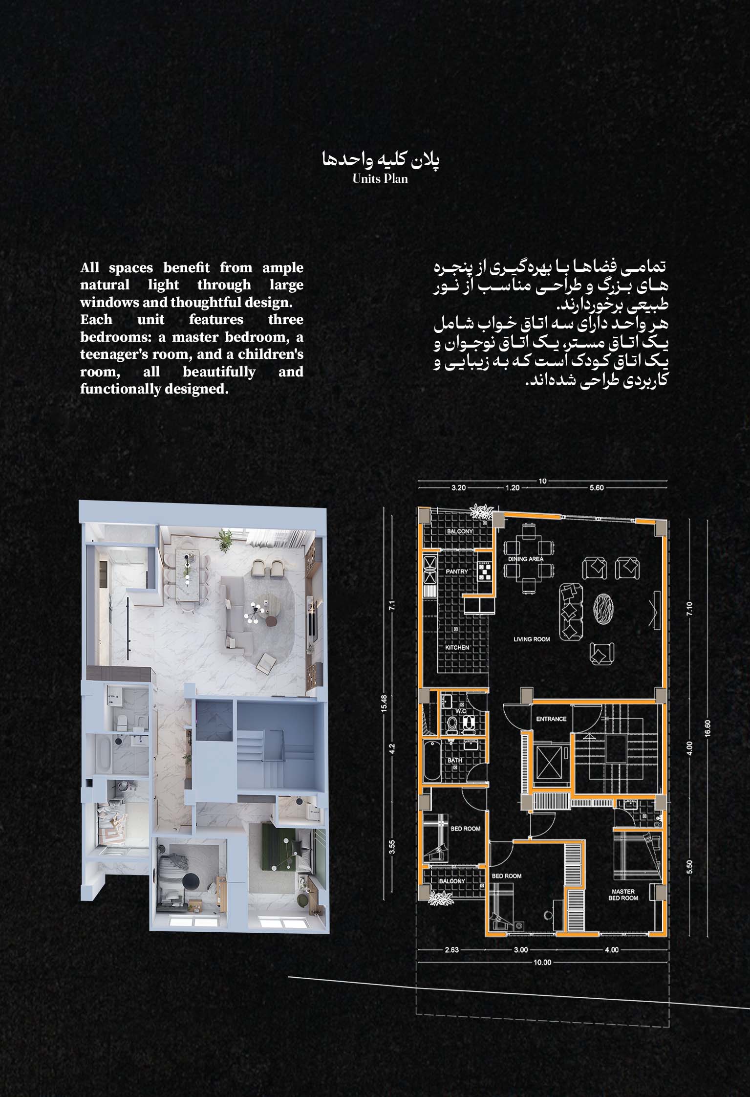 طراحی داخلی هر واحد بر پایه اصول سبک مینیمال و با استفاده از متریالهای باکیفیت انجام شده است: